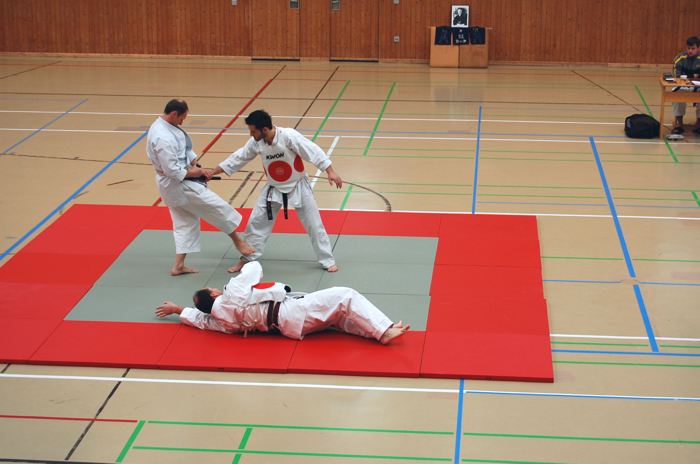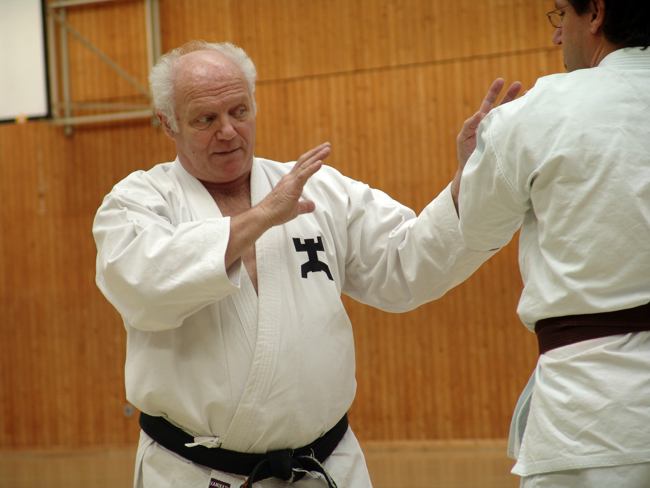 Foto oben: Fritz Nöpel, 9.Dan erklärt Nahkampf-Prinzipien im November 2007