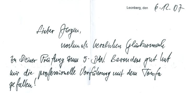 Foto oben: Schreiben von Albrecht Pflüger, 7.Dan im Dezember 2007