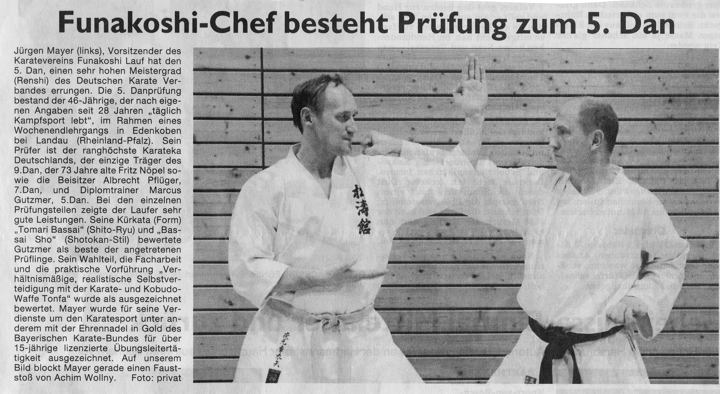 Die 5.Danprüfung im Karate bestand Jürgen Mayer am Sonntag, den 25.11.2007 im Rahmen eines Wochenendlehrganges im November 2007 in Edenkoben bei Landau (RH-PF) bei dem ranghöchsten Karateka Deutschlands, Fritz Nöpel, 9.Dan und den Beisitzern Albrecht Pflüger 7.Dan und Diplomtrainer Marcus Gutzmer 5.Dan.