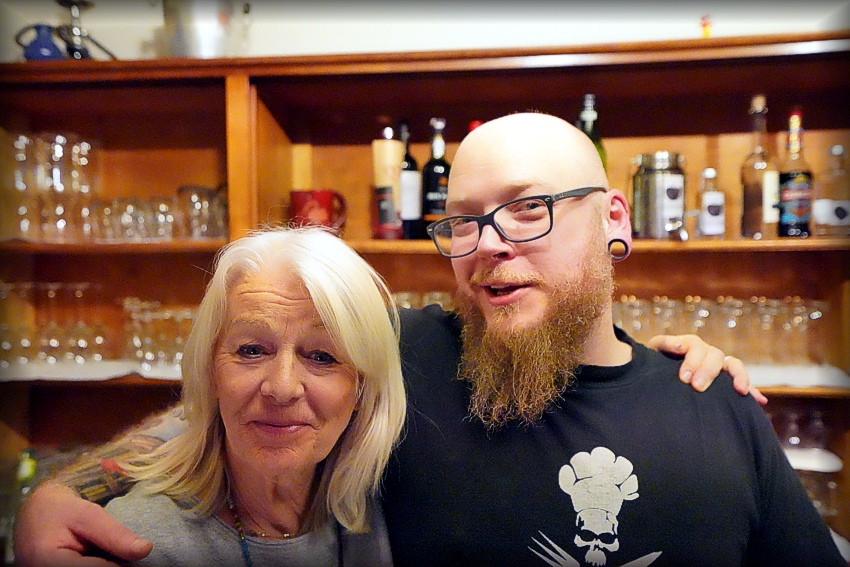 Foto oben: Nach fast zwei Stunden intensiven Trainings wurde der Kurz-Lehrgang beendet und man ging zum gemeinsamen Essen nach Eschenbach in den GRÜNEN SCHWAN. Wirt und Koch Bernd Portune (siehe oben) hat ja auch schon als Kind bei Jürgen Mayer Karate trainiert.