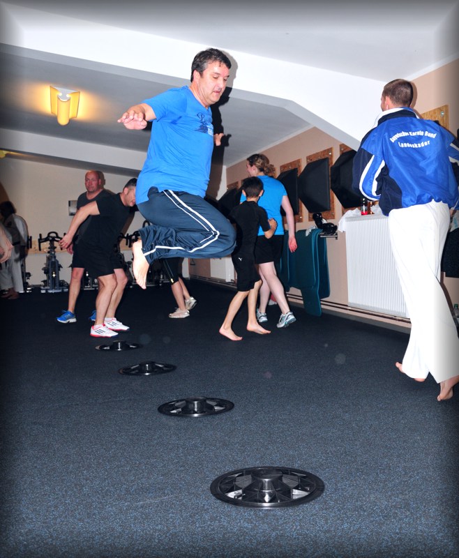 Die Karate-Cracks zeigten Schnelligkeits-, Schnellkraft-, und Koordinationstraining, es wurden Dehnübungen analysiert und natürlich mit dem Partner Faust- und Fußtechniken, sowie Kampfhandlungen geübt! Zum Abschluss des kleinen Seminars gab es Fotos mit den Erfolgstrainern von Welt-, internationalen- und Landesmeistern! Mit Gastgeber Jürgen Mayer, die Freundschaft mit gegenseitigen Besuchen besteht schon seit rund 27 Jahren, unternahm man Sightseeing in der Region und speiste vorzüglich das herzhafte fränkische Essen!