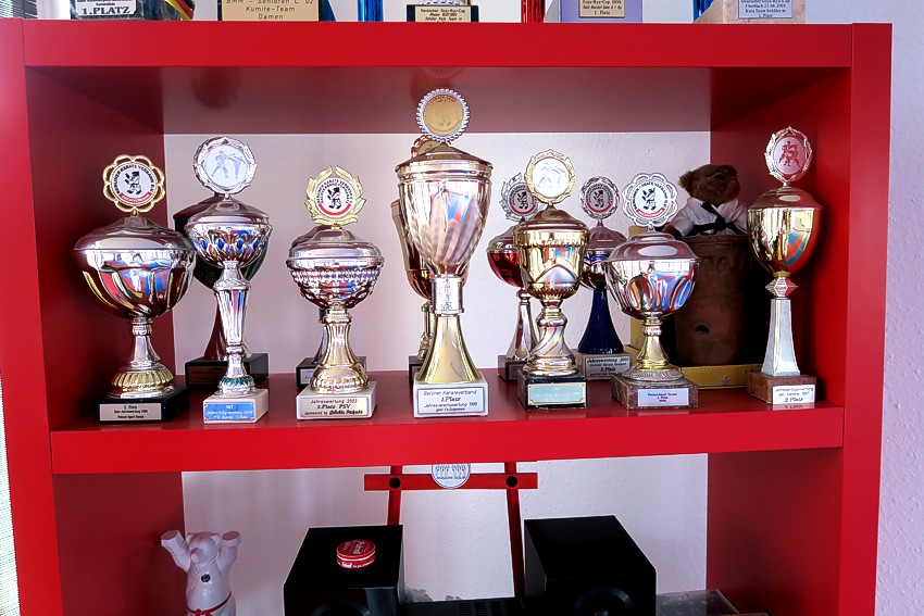 Natürlich sieht man hier nur einen ganz kleinen Teil der Pokale! Die Budo Akademie Berlin ist unglaublich erfolgreich im Karatesport!