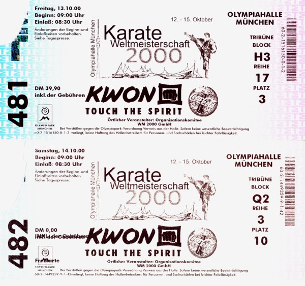 Kampfsport der Extraklasse: Karate–Weltmeisterschaft 2000 in der Olympiahalle in München vom 12. – 15. Oktober 2000