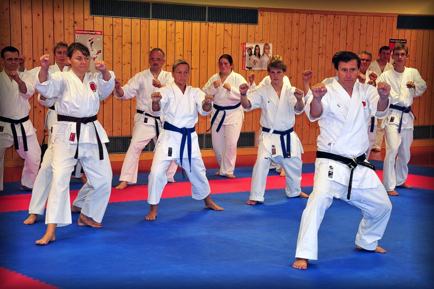 Foto oben: DKV Präsident Wolfgang Weigert, 6.Dan reiste erst am Sonntagnachmittag an. Er lehrte Kihonkombinationen, die hohe Kata Wankan und traditionelles Kumite!