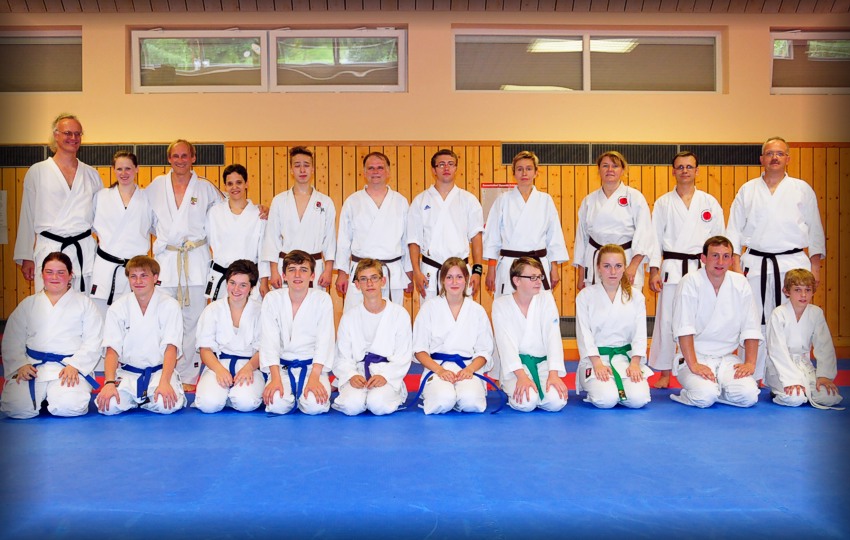 Foto oben: Das Ausrichterteam um Christian Brüchner, 4.Dan bot gute Rahmenbedingungen. Er lehrte selbst Selbstverteidigung!