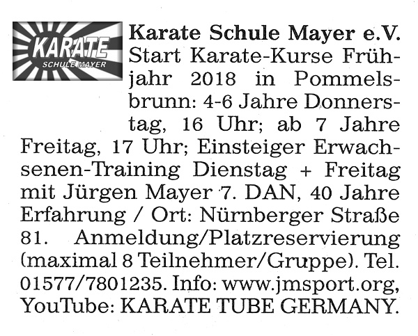 Karate-Training in Röthenbach am Montag und in Pommelsbrunn Dienstag, Donnerstag und Freitag!