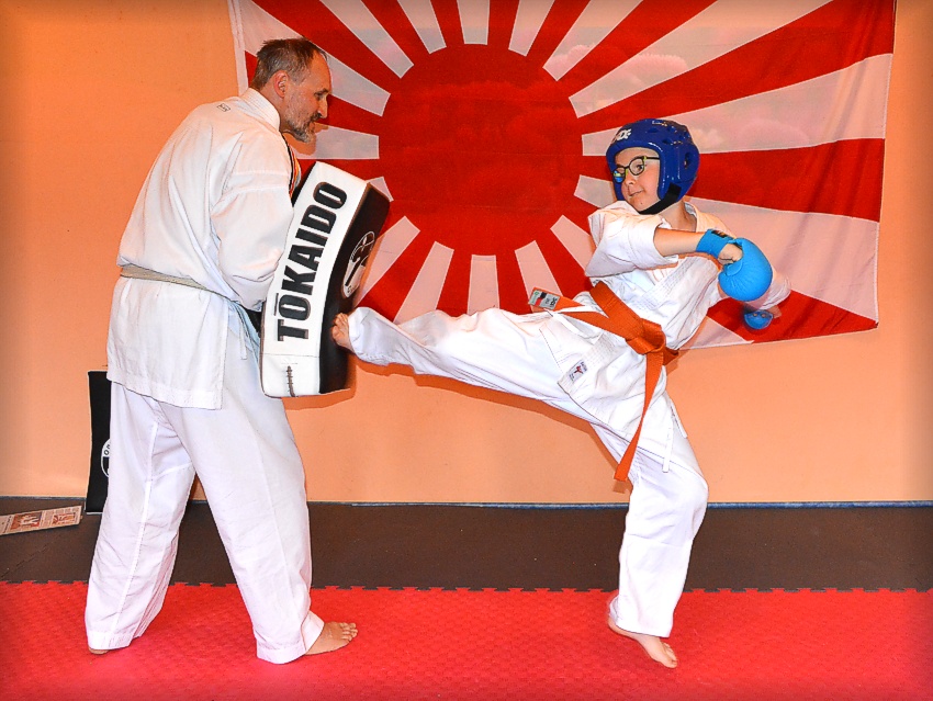 die Wirksamkeit der Karate Techniken wahlweise auf Sandsack, Pratzen und