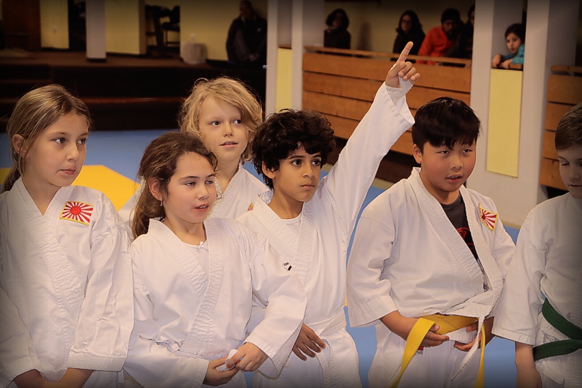 Die Kindern zeigten tolle Leistungen bei den Aufgaben, die aus Übungen des gesamten Trainingsprogrammes bestehen, wie Grundkonditionelle Fertigkeiten Kraft (Kraftübungen mit dem eigenen Körpergewicht wie Liegestütz, Bauchaufzüge, Kniebeuge), Dehnung (Spagat), Ausdauer unterschiedlich lang, je nach Gürtelgrad (KZA & MZA) und Motorik an der Koordinationsleiter, sowie die Umsetzung der Karatetechniken an der Pratze und dem Schlagpolster. Bei der Selbstverteidigung wurden Befreiungen gegen Handgelenksumklammerungen, Körperumklammerungen, Griff in die Haare und Befreiungen in der Bodenlage gezeigt!