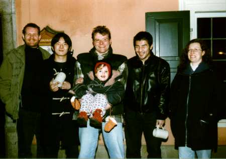 Am Montagabend trainierte man gemeinsam im Erwachsenentraining. Rechts im Bild 2.Vors. Dr. Martin Hofer im Kampf mit Mats. Unsere Starter bei Meisterschaften hatten hier die optimalen Trainingspartner zur Vorbereitung. Am Abend feierte man im "Il Pulcinella" Sayonara (Abschiedsparty) mit japanischen und fränkischen Gesängen und Stimmungseinlagen. Viele Tränen wurden ob der Gastfreundschaft und der bevorstehenden Weiterreise der japanischen Gäste vergossen. |