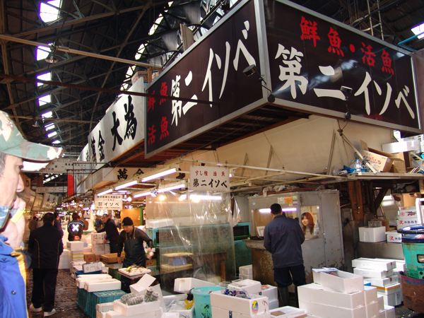 Tsukiji (nahe der Ginza in Tokio): Der Tsukiji-Fischmarkt (jap. 築地市場) ist im namensgebenden Stadtviertel Tsukiji des Tokioter Stadtbezirks Chūō und gilt als größter Fischmarkt weltweit. Der Markt in Tsukiji ist Teil des zentralen Großmarkts. Es wird im Stadtteil aber auch mit Gemüsen und Früchten gehandelt.