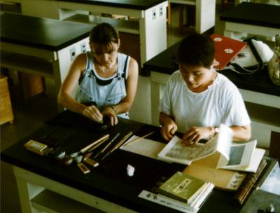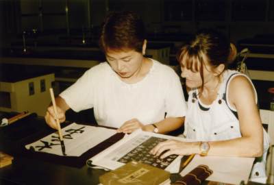 Fotos: Elke Beck wurde mit der in Japan bekannten Kalligraphiemeisterin und Buchautorin Mrs. Saeko Hosoda bekannt gemacht. Sie lehrte ihr Grundbegriffe der japanischen Schreib –und Malkunst. |