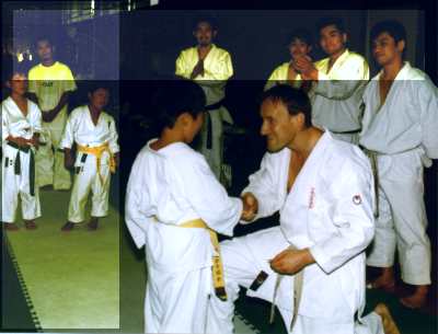 In Fukuoka und in Hiroshima bei Shotokan-Meister Kajimoto 6.Dan hatte Mayer Sensei darüberhinaus auch die Ehre das Training leiten zu dürfen, was für einen "Gaijin" (Ausländer) eigentlich unmöglich ist. Die Karatekas von Hiroshima waren von den "Kihon"-Techniken (Basisprinzipien) des Laufers begeistert. Bei den abschließenden gegenseitigen Vorführungen zeigte Mayer Tessen und Frauen-SV-Techniken, die an dieser Schule unbekannt waren, umso größer war die Verblüffung der Japaner, was für Möglichkeiten in einem kleinem Stock (Tessen): Füllfederhalter etc. stecken.