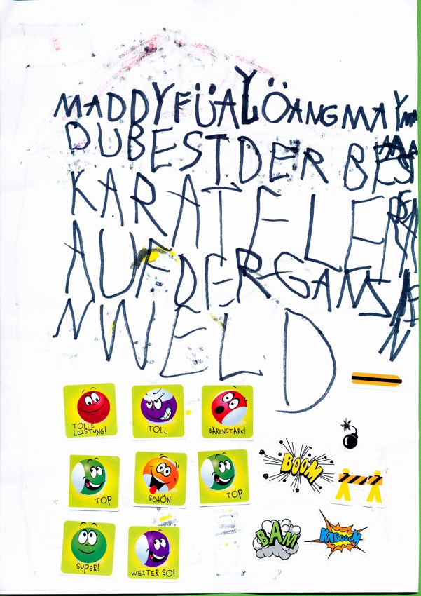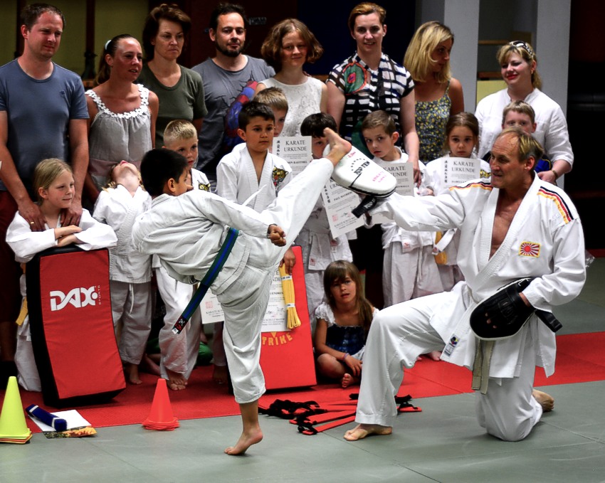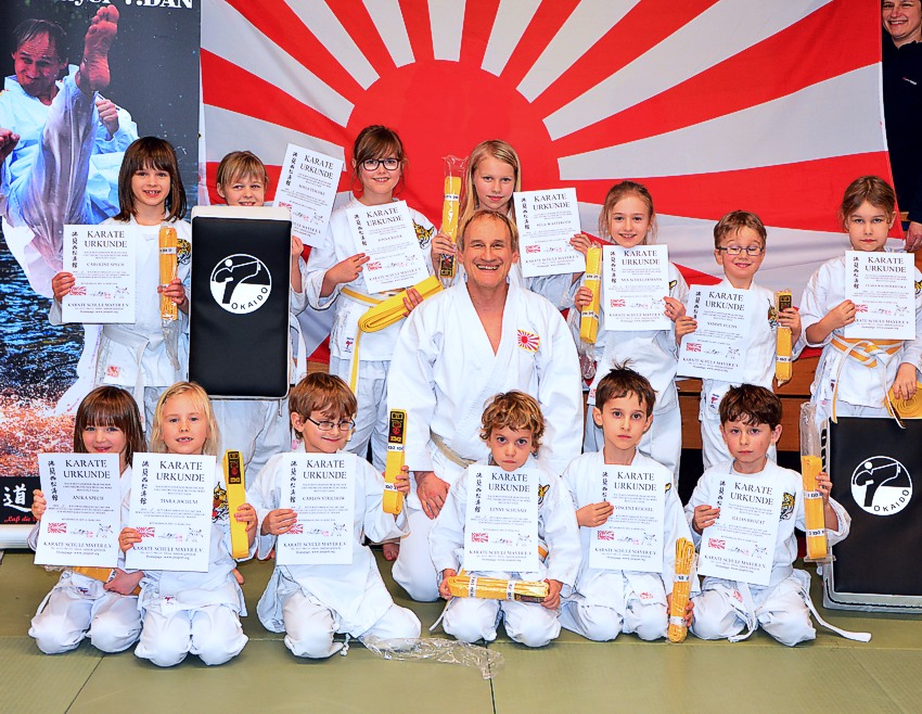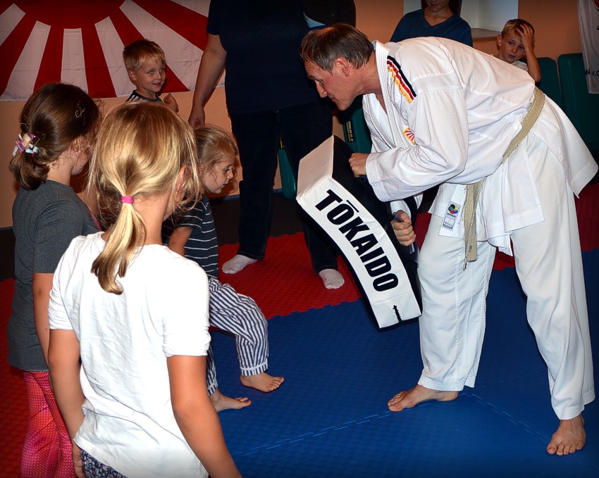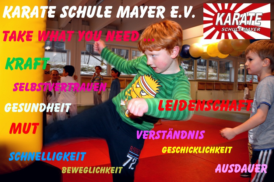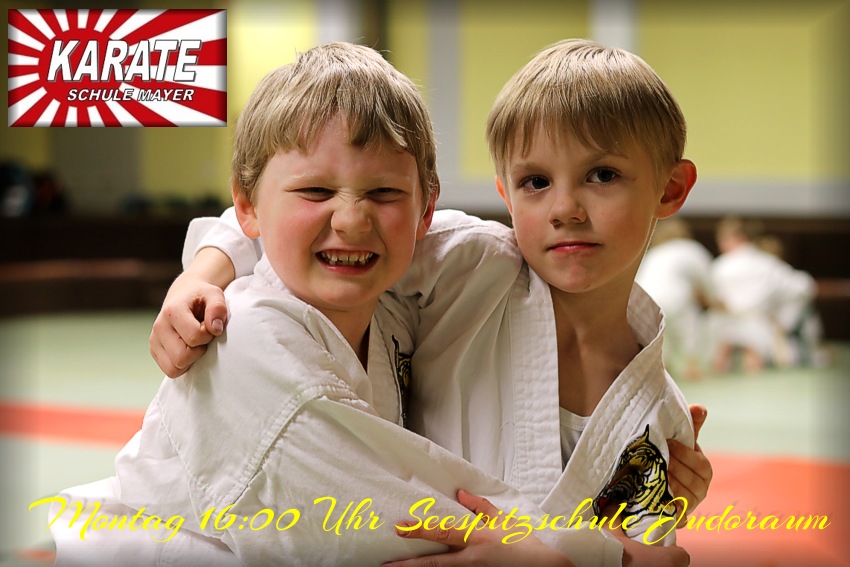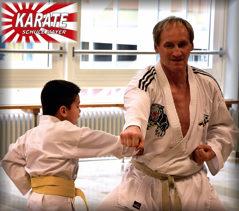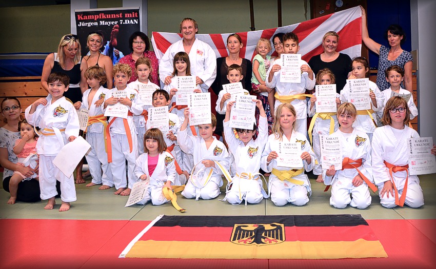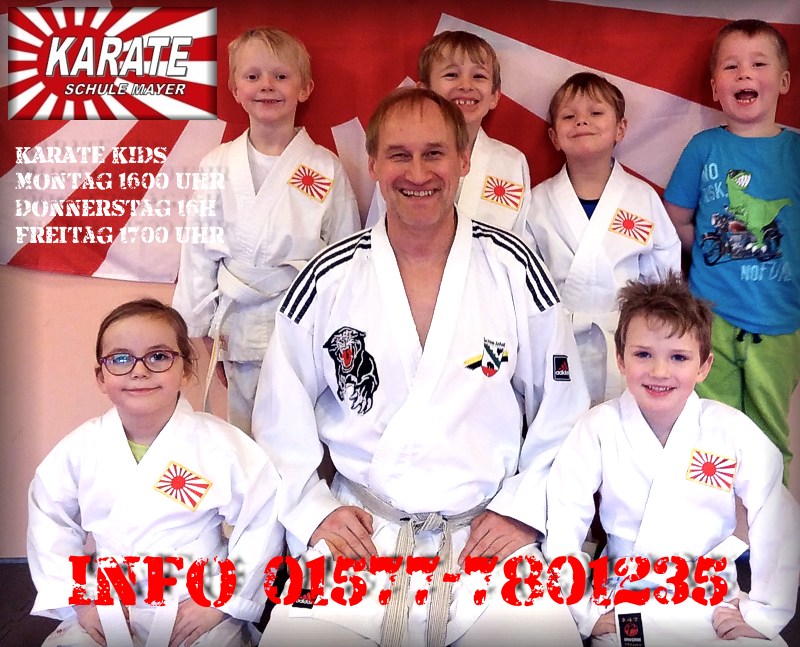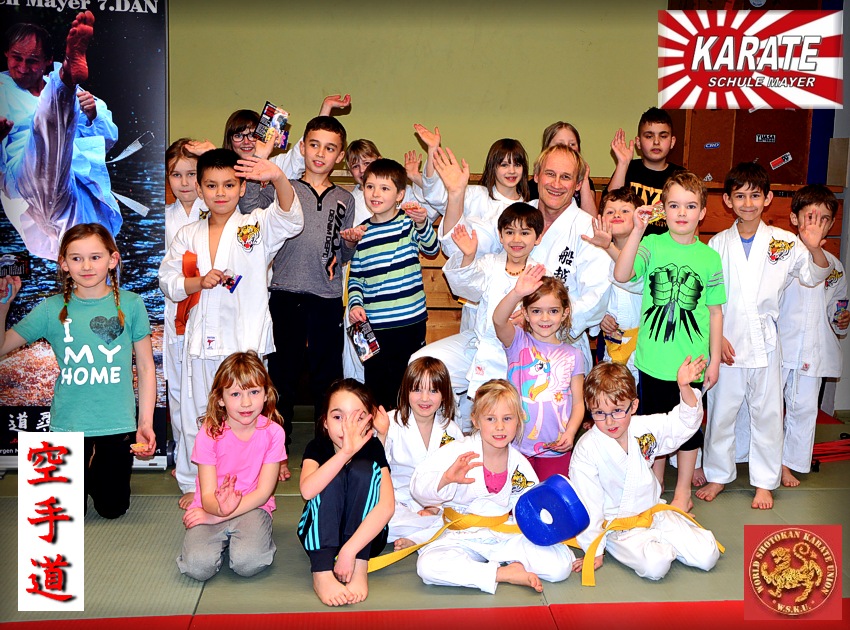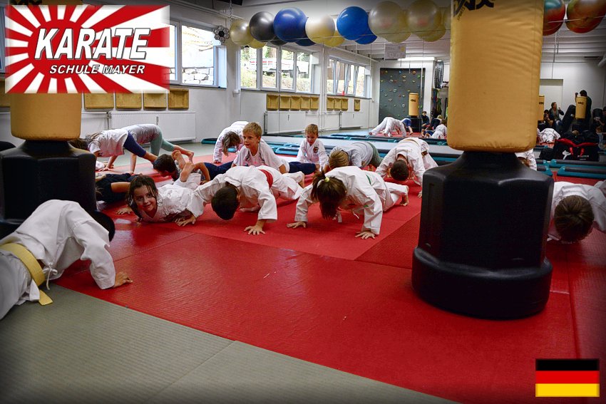 Karate mit Jürgen Mayer 7.Dan. Die Karate-Minis-Gruppe sind begeistert dabei bei den Themen: KAMPFSPORT> KARATE> SELBSTVERTEIDIGUNG. Sie lernen von ihrem Sensei J. Mayer > Was ist: Ausdauer, Schnelligkeit, Reaktion, Beweglichkeit, Kraft, Karatetechnik: Fauststoß, Abwehrblock, Fußtritt, Werte und japanische Kultur & Sprache "Hajimemashte"!