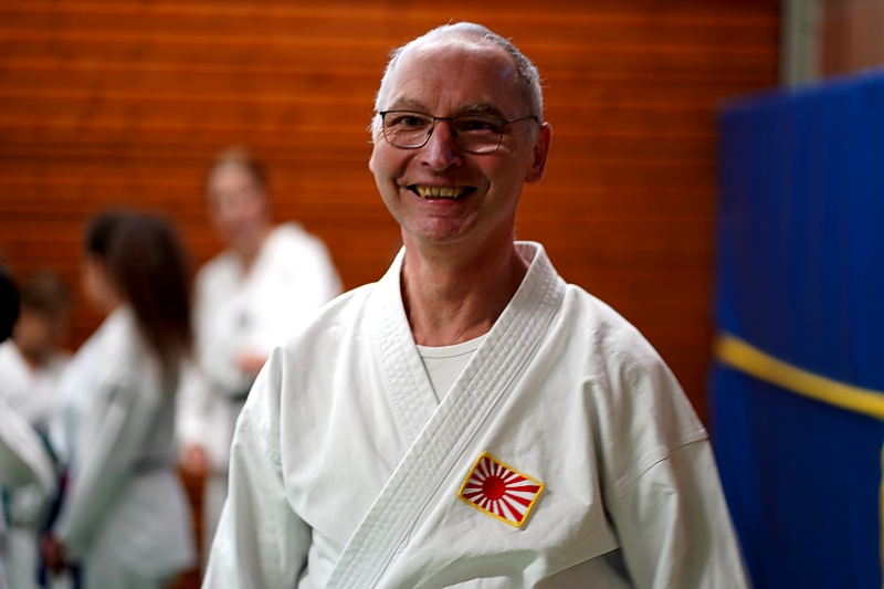 Foto oben: Jürgen Mayer (47 Jahre ununterbrochen Karate Training) lehrte Kampfkunst mit Herz, also mit Leidenschaft.