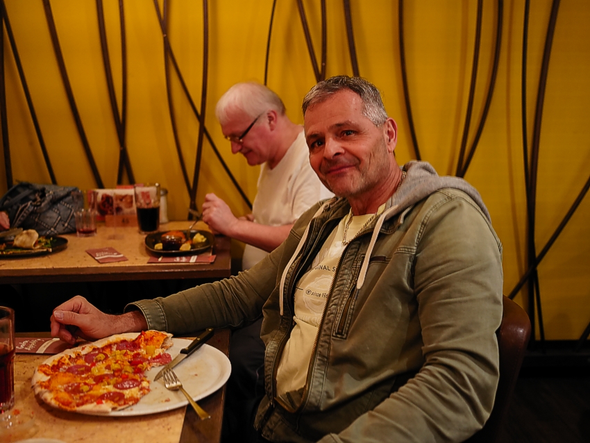 Nach dem Training ging es mit den Erwachsenen, auch unser Norbert 2.DAN und den Jugend Cracks Oliver und Fabian, zum "Genießertreffpunkt" Bäckerei/ Cafe Schmidt in Schwabach und man genoss die ausgezeichneten italienischen Spezialitäten wie Holzofenpizza, Schnitzel und Lasagne bei guten Gesprächen über die Kampfkunst. Vielen Dank Holger für die Einladung, das Training und den schönen Abend in Schwabach!
