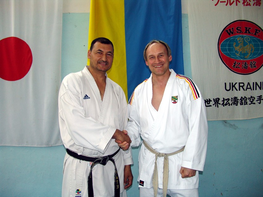 Foto oben und unten: das vorläufig letzte Treffen im Jahr 2015 (oben) und das erste Treffen der beiden Karate-Großmeister Tarabeih und Mayer 2011 in Odessa in der Ukraine