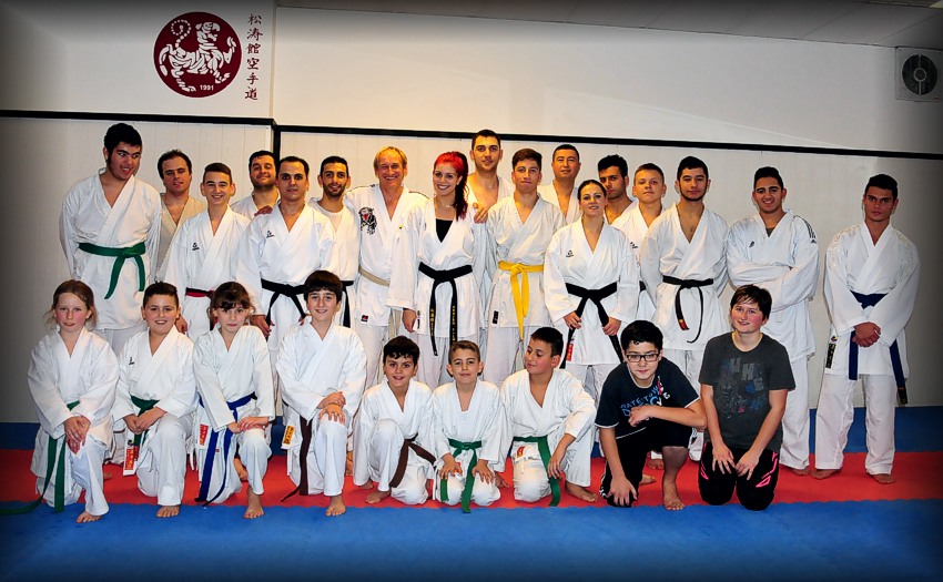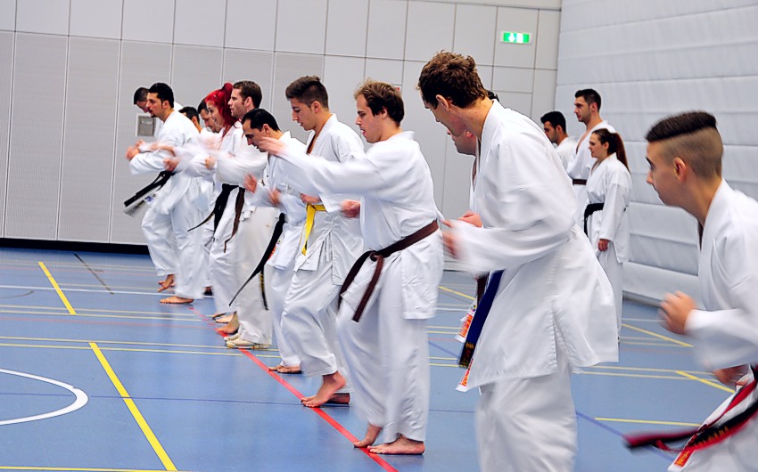 Die Kämpfer des Karate Vereins Shogun Memmingen. Rechts Murat, 3.Dan, Sempai von Sensei Senol Yildirim, 5.Dan