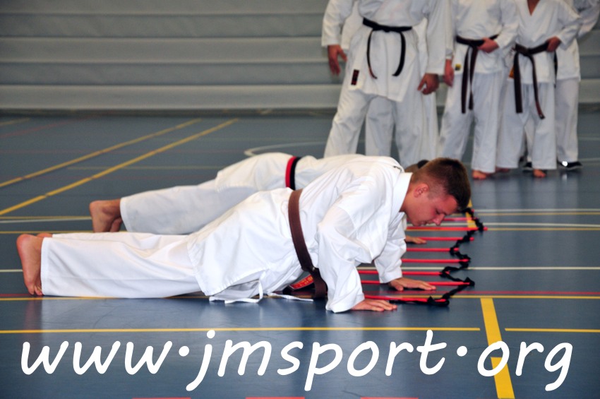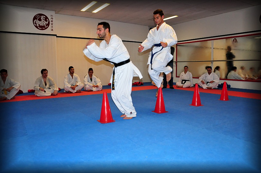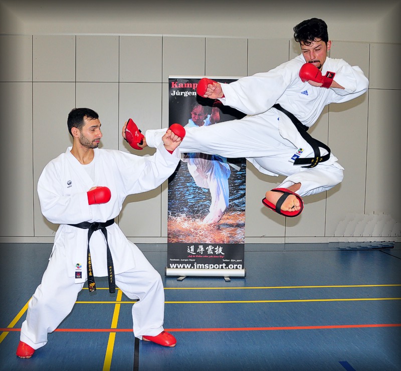 Fotos oben und unten: Die neuen Karatemeister zeigten moderenes WKF-Kumuite im Wahlteil der Stiloffenen Karate Prüfung