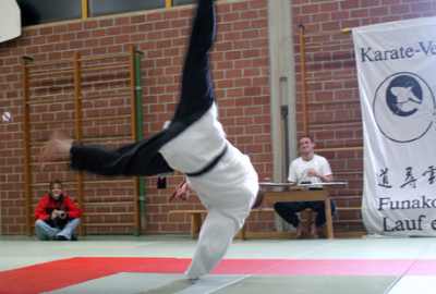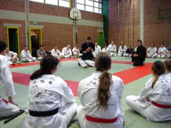 - hochrangige Gäste aus Brandenburg (Teltow), Thüringen (Eisenach) und Bayern (München, Ansbach, Passau, Bad Reichenhall, Traunreuth) und der Region begeistert - trotz Schnee und stundenlanger Anfahrt sehr viele Teilnehmer Lauf/ Rudolfshof: Zum ersten Mal im Jahr 2003 lud Funakoshi-Vorsitzender Jürgen Mayer zum Expertentreffen der Tonfaliebhaber. Über 50 Teilnehmer fanden den Weg am 8.02.2003 nach Mittelfranken. Den weitesten Anfahrtsweg hatten die Brandenburger aus Teltow. Wieder fanden viele hochrangige Danträger aus verschiedenen Kampfsystemen (u.a. Rolf Kühnel, 9.Dan), darunter viele Vereinsleiter und Beamte (Dienststellen- und Ressortleiter) den Weg nach Nordbayern zum Karate-Verein Funakoshi. |