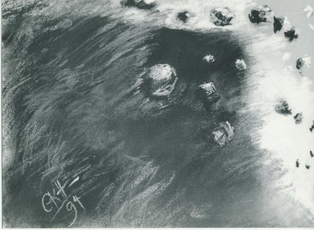 Foto links: "Katapult", Pastell 60 x 80 von Künstlerin Gerda Karina Hederer, Homepage: www.gerdakarinahederer.de. Foto unten: Die Nürnberger Künstlerin Gerda Karina Hederer in der Aula der Bertleinschule in Lauf im regen Gespräch. |