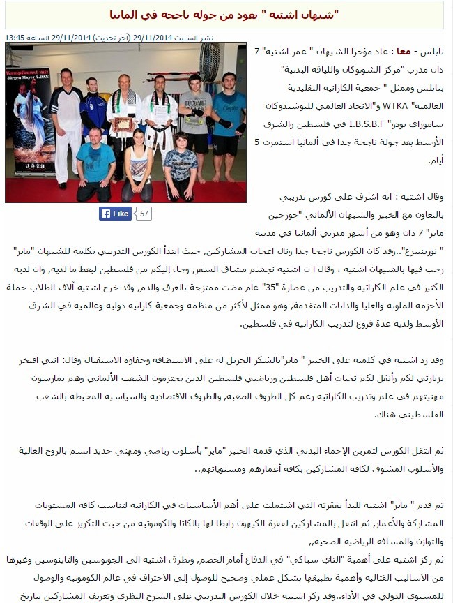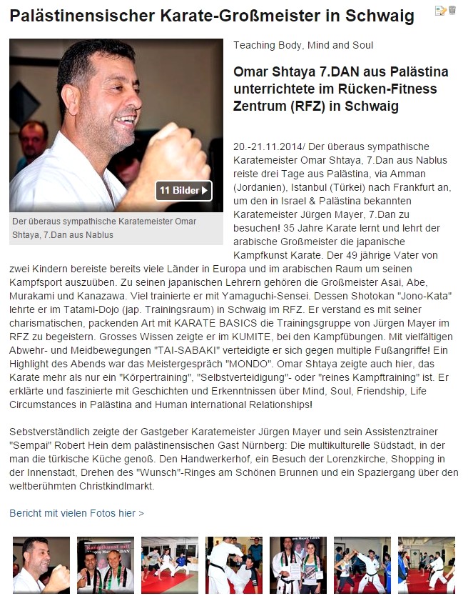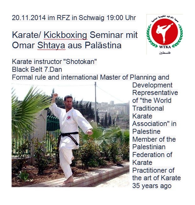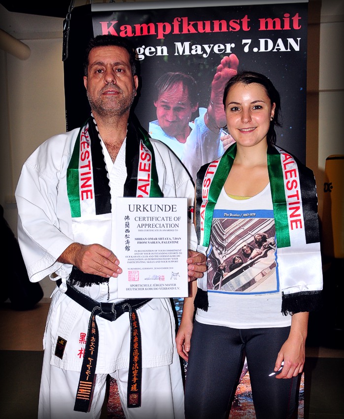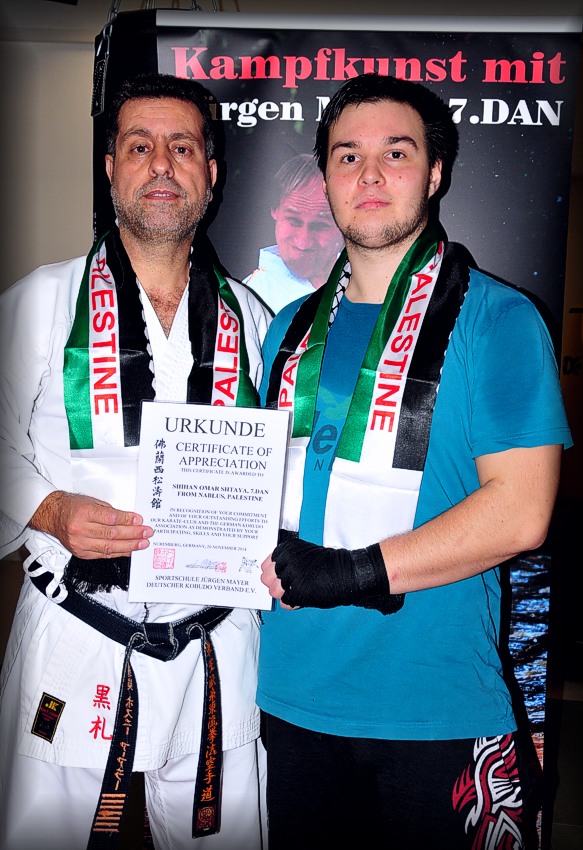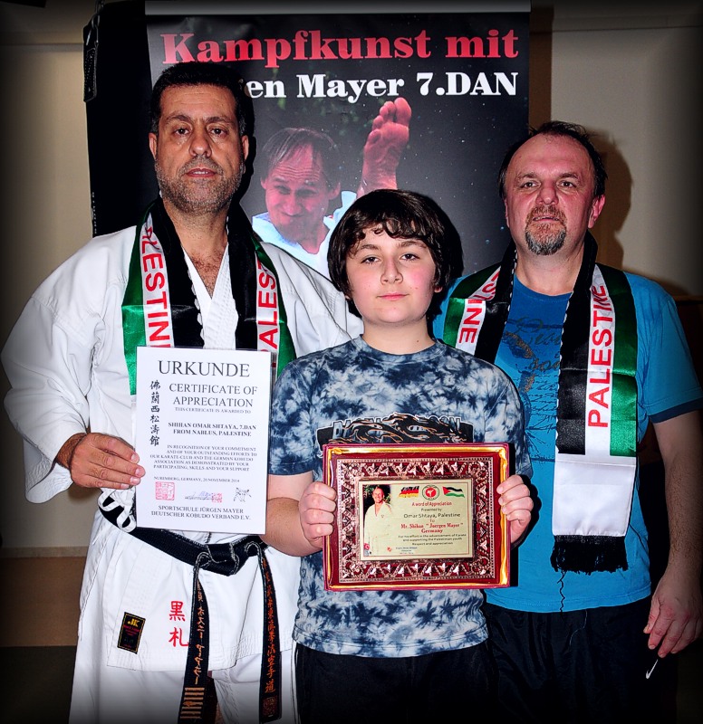 في الكاراتيه بطل محبوب للغاية عمر Shtaya، دان 7 من نابلس في فلسطين سافر ثلاثة أيام من فلسطين، عن طريق عمان (الأردن)، اسطنبول (تركيا) إلى فرانكفورت لزيارة مشهورة في إسرائيل وفلسطين للكاراتيه ماستر جيه ماير! 35 عاما الكاراتيه يتعلم ويعلم العربية غراند ماستر، وفنون الدفاع عن النفس الكاراتيه الياباني. الأب البالغ من العمر 49 عاما لطفلين (المجاهد وObatha) جال بالفعل العديد من البلدان في أوروبا والمنطقة العربية لممارسة فنون الدفاع عن النفس لها. وشملت أساتذته الياباني غراند ماستر اساي، ابي، موراكامي وكانازاوا.