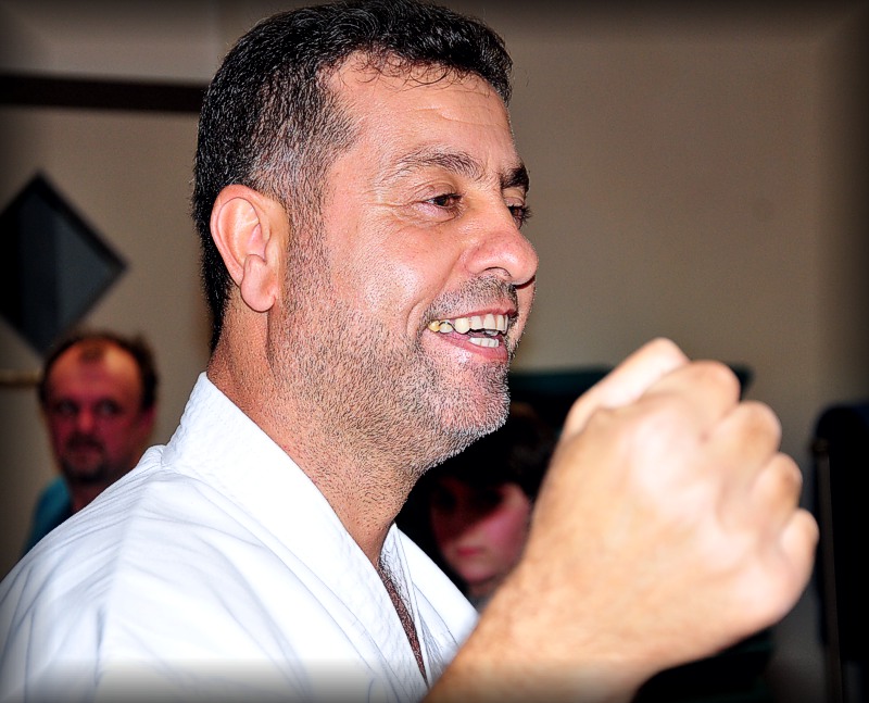 Omar Shtaya, from Palestine, Karate Instructor "Shotokan" Black Belt 7.Dan (Shihan), International Master Degree of Planning and Development, Representative of "the World Traditional Karate Association" in Palestine, Member of the Palestinian Federation of Karate, Practitioner of the art of Karate 35 years ago. Guest of Shihan Jürgen Mayer, 7.Dan and his Students in Bavaria, Germany in November 2014. Der überaus sympathische Karatemeister Omar Shtaya, 7.Dan aus Nablus in Palästina reiste drei Tage aus Palästina, via Amman (Jordanien), Istanbul (Türkei) nach Frankfurt an, um den in Israel & Palästina bekannten Karatemeister J. Mayer, 7.Dan zu besuchen! 35 Jahre Karate lernt und lehrt der arabische Großmeister die japanische Kampfkunst Karate. Der 49 jährige Vater von zwei Kindern (Mujahed und Obatha) bereiste bereits viele Länder in Europa und im arabischen Raum um seinen Kampfsport auszuüben. Zu seinen japanischen Lehrern gehören die Großmeister Asai, Abe, Murakami und Kanazawa. Viel trainierte er mit Yamaguchi-Sensei. Dessen Shotokan "Jono-Kata" lehrte er im Tatami-Dojo (jap. Trainingsraum) in Schwaig im RFZ. Er verstand es mit seiner charismatischen, packenden Art mit KARATE BASICS zu begeistern. Grosses Wissen zeigte er im KUMITE, bei den Kampfübungen. Mit vielfältigen Abwehr- und Meidbewegungen "TAI-SABAKI" verteidigte er sich gegen multiple Fußangriffe! Ein Highlight des Abends war das Meistergespräch "MONDO". Omar Shtaya zeigte auch hier, das Karate mehr als nur ein "Body"- oder "Kampf"-Training ist. Er erklärte und faszinierte mit Geschichten und Erkenntnissen über Mind, Soul, Friendship, Life Circumstances in Palästina and Human international Relationships!عمر Shtaya، من فلسطين، مدرب كاراتيه "شوتوكان" الحزام الأسود 7.Dan (شيحان)، درجة الماجستير الدولي للتخطيط والتنمية، ممثل "جمعية الكاراتيه التقليدية العالمية" في فلسطين، عضو الاتحاد الفلسطيني للكاراتيه، ممارس لل فن الكاراتيه قبل 35 عاما. ضيف شيحان يورغن ماير، 7.Dan وطلابه في بافاريا، ألمانيا في نوفمبر 2014.