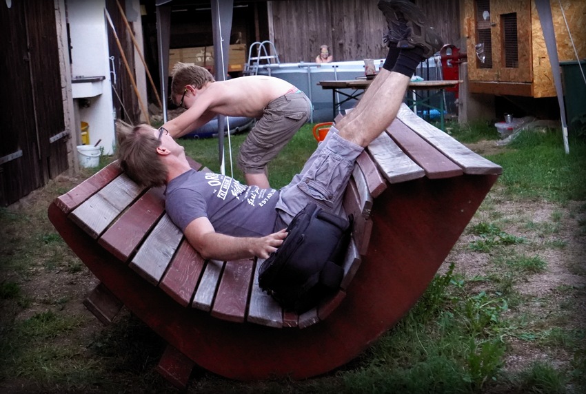Foto oben: Peter total relaxed nach stressiger Arbeitswoche