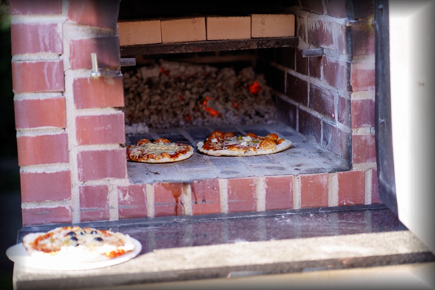 Der Steinofen wurde acht Stunden vorher angeschürt um auf