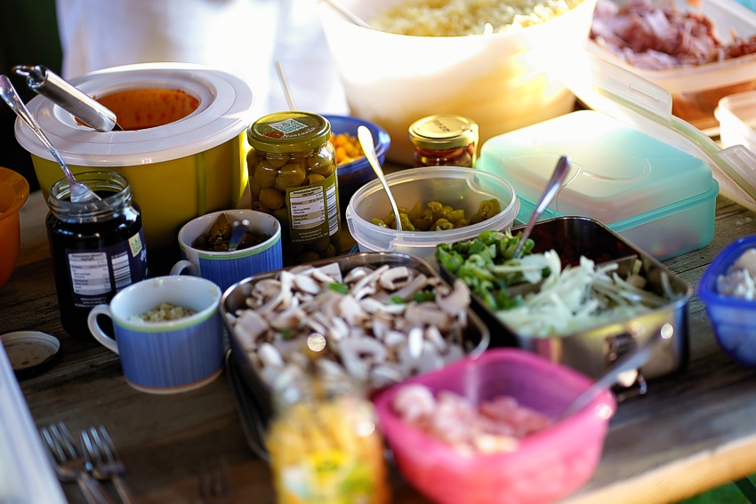Erwachsenen ließen sich die selbst zusammengestellte Pizza schmecken.
