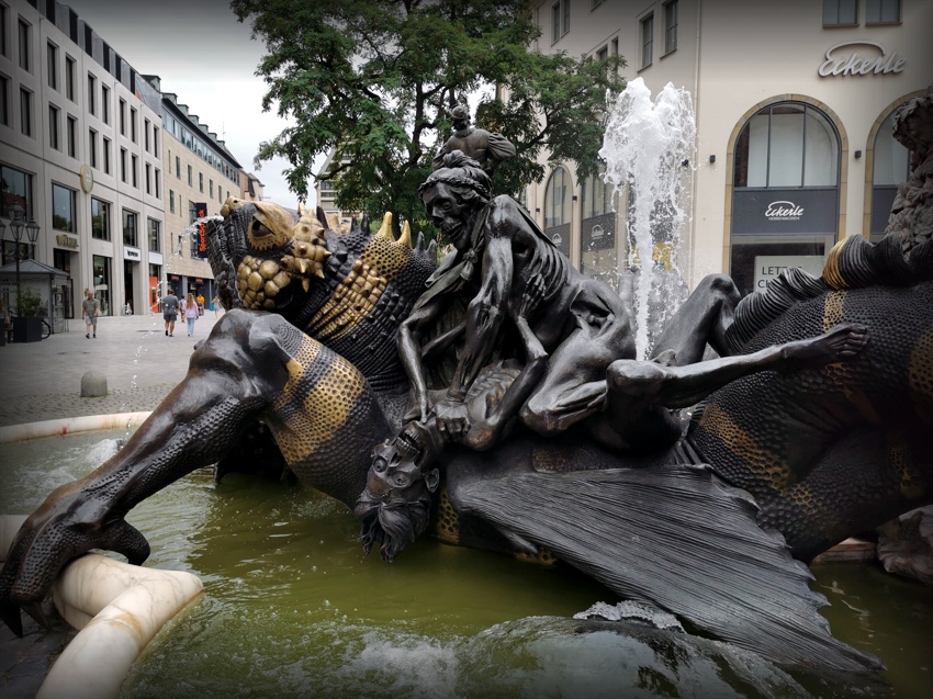 am Nürnberger Ludwigsplatz / und am Schönen Brunnen den Wunschring gedreht