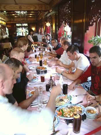 Das asiatische Restaurant wurde zur Gesprächsbörse der Teilnehmer über Kampfsport, den alltäglichen Dienst und über den DEUTSCHEN KOBUDO Verband e. V. Man hatte gute Laune beim preisprämierten chinesischen Essen und die Runden Pflaumenwein stimmten auf den 2.Teil des Intensivkurses ein.