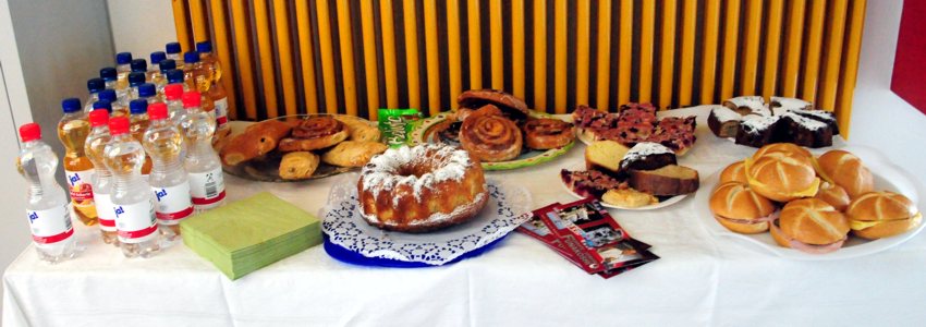 kostenlose Getränke, Kaffee-, Kuchen, Muffins- und Brezel-Buffet,