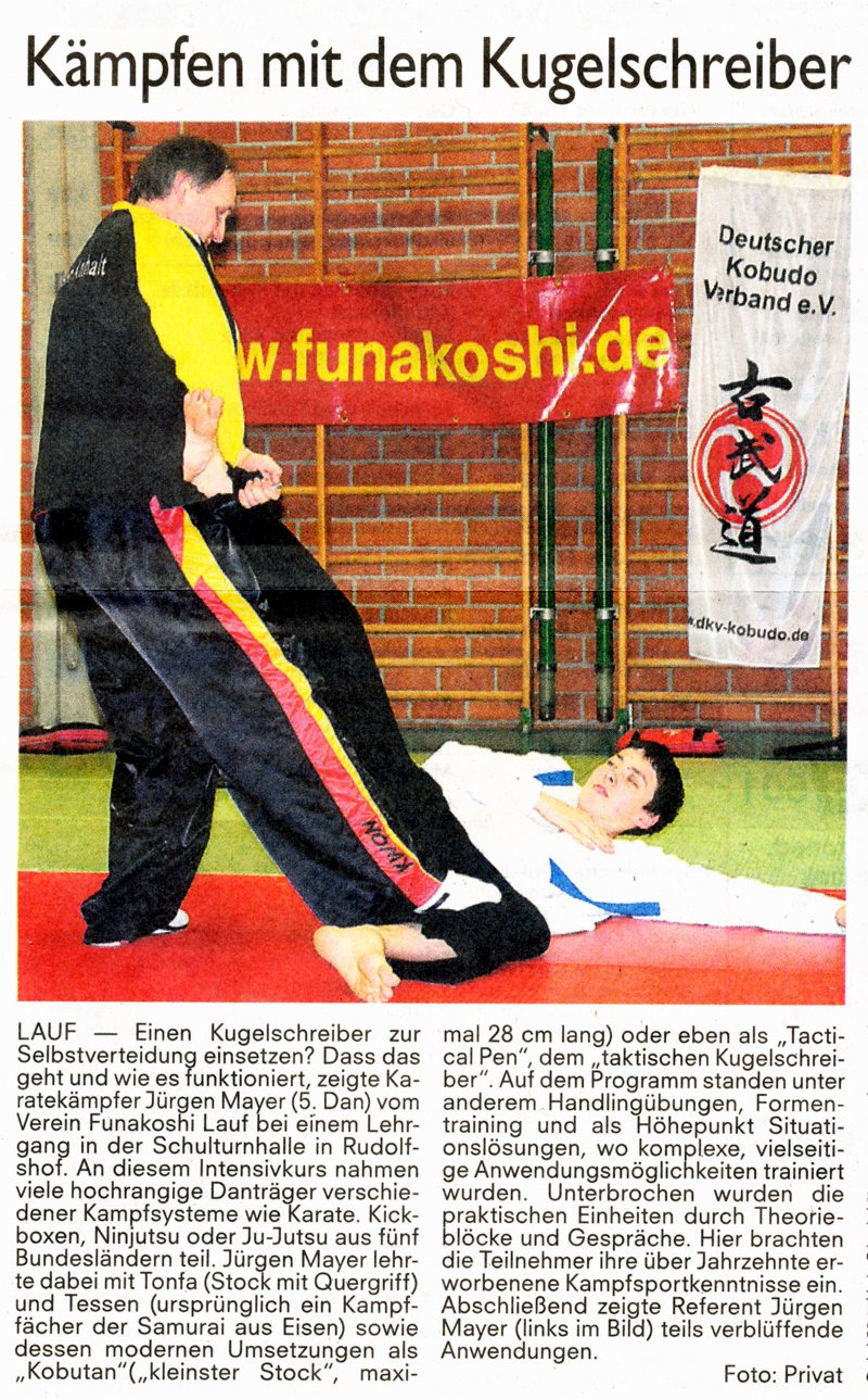 MES- und Tactical Pen-Techniken mit Jürgen Mayer, 5.Dan Tonfa-Intensivkurs in Lauf Teilnehmer aus fünf Bundesländern! |