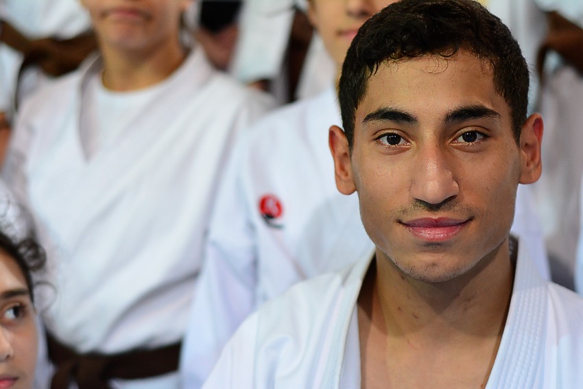 dekoriert mit schwarzen Gürteln und nationalen und internationalen Titeln. Einer