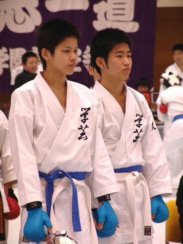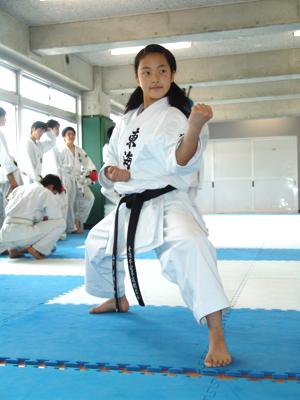 Ausdruck! Rechts die Alljapanische Meisterin im Kata-Wettbewerb: Mayumi Yamashita (Kür-Kata Kururunfa). Ihr Vater ist der Trainer der Shoyo-Highschool der Tokai-University Yamashita Sensei, zusammen mit Trainer Hirota Sensei (Foto weiter oben). Ich besuchte die Schule am 24.03.2007. Kunosa |