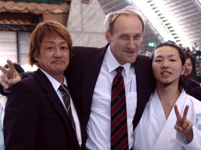 Foto rechts: Karate-Do Club Head Coach Ryosho Osuka, Highschool of Takasaki City University of Economics Affiliated & Karate Club Funakoshi, President and Head Coach Juergen Mayer ... verstanden sich prächtig
