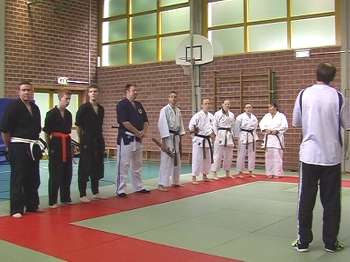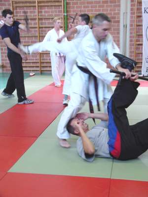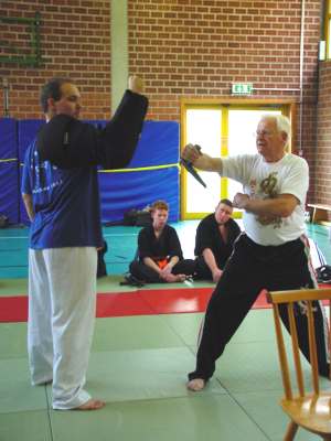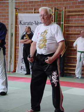 Die Legende Wieder in Lauf ein leibhaftiger 9.DAN ! JU-JITSU-Legende und Special-Guest Rolf Kühnel, Jahrgang 1923, 9.Dan Ju-Jitsu, 5.Dan Judo (DJB) war wieder begeistert vom TONFA-S. Der Buchautor (JU-JITSU - SELBSTVERTEIDIGUNG SCHRITT FÜR SCHRITT, Verlag Offizin Andersen Nexö Leipzig mit großartigen aufwendigen Fotos) ist ein Meister, der ein Vertreter der legendären Jiu-Jitsu Schule des Altmeisters Erich Rahn ist. Er äußerte sich vor versammelter Gruppe zum Abschluß des Lehrgangs, voll des Lobes über die Organisation und Stimmung des Lehrgangs. |
