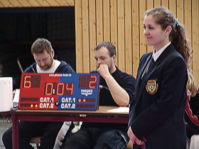In zwei Gruppen, wurde auf einer perfekten Kampffläche die Sieger hart, engagiert und fair ermittelt. Hier stellten sich erstmalig die Landes-Kampfrichter zur Verfügung. Verantwortliche Kampfrichterin war Ina-Marie Tille, die sich hochkompetente, weibliche Hilfe aus Berlin (siehe Foto rechts unten) geholt hatte.