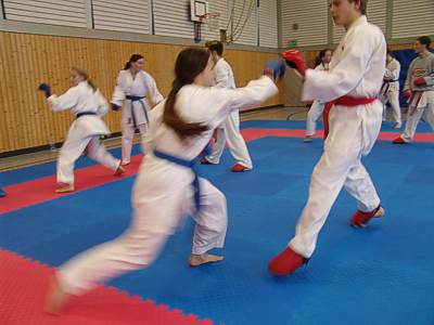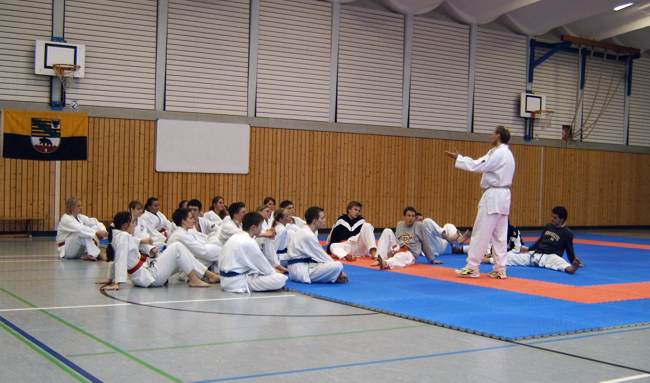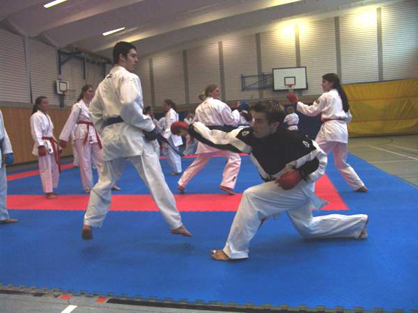 Quedlinburg 11.-12.03.2006/ Das über tausendjährige Quedlinburg, Weltkulturstadt der UNESCO, war im März Gastgeber für die besten Kämpfer aus Sachsen-Anhalt. In der Krönungsstadt vieler deutscher Kaiser wurde die letzte Vorbereitung zur Deutschen Karatemeisterschaft, die im April in Hamburg stattfinden wird, abgewickelt. Die Kämpfer des Landeskaders Sachsen-Anhalt absolvierten intensive Trainingseinheiten in Quedlinburg. Die Inhalte und Belastungsnormative (unmittelbare Wettkampfvorbereitung) wurden im Hinblick auf die DM SEN in Hamburg im April ausgewählt. Die Einheiten waren wettkampfspezifischer ausgerichtet (viel Sparring "Jiyu-Kumite") und die Intensität stand im Vordergrund (kurze Belastungszeiten entsprechend dem WKF-Regelwerk). Ergänzend dazu wurden wieder Leistungstests (IPPTP) nach internationalen Standarts absolviert, die das ganze Jahr begleitend mitlaufen. In vier praktischen Trainingseinheiten am Samstag und Sonntag wurden Schnellkraft, Technik (Basics & Würfe) und Taktik (Was mache ich wenn?), trainiert. Dazwischen in den Theoriepausen gab es funktionierende Trainingstipps ("Schnelligkeitszunahme in kürzester Zeit", Handgelenk-Stärkung") und aktuelle Videos der letzten Landesmeisterschaften in Egeln auf der Großleinwand, die dankenswerter Weise Jörg König, 2.Dan mitgebracht hatte. Am Samstag stand auch das "Auskämpfen" der TEAMS an. In zwei Gruppen, wurde auf einer perfekten Kampffläche die Sieger hart, engagiert und fair ermittelt. Hier stellten sich erstmalig kompetent die Landes-Kampfrichter zur Verfügung. |