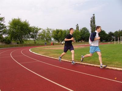 Es ging allerdings los mit Lauftests. Erst stand der Coopertest an, danach die 800m. Erstmalig überhaupt hatte das Landeskader eine 400m-Bahn zur Verfügung. Dies nutzte LT J. Mayer um die Ausdauer bei sommerlichen Temperaturen zu testen. Die Tests bestätigten, was subjektiv schon zu sehen war. Die "Guten Wettkämpfer (Kata & Kumite)" glänzten auch in den Ausdauer-Werten. Aber nicht alle, die Spitzenwerte in den Grundkonditionellen Fähigkeiten bringen, sind auch zwangsläufig sportartspezifisch (also im Karate-SHIAI) sehr gut! Auch wenn die Tests anstrengend waren -die kurzen Belastungszeiten (Cooper-Test 12 min und die 800 m in max. 4 min) - waren eine schöne Abwechslung und Motivation zum "NUR-KARATE-TRAINING". Der Cooper-Test, benannt nach dem amerikanischen Sportmediziner Kenneth H. Cooper, ist ein anerkannter Test zur Überprüfung der läuferischen Ausdauer. Es handelt sich um einen Lauf von 12 Minuten Dauer, bei dem die in dieser Zeit zurückgelegte Strecke ermittelt wird. Der Test ist anspruchsvoll, da die zurückgelegte Strecke zwischen einer reinen Mittel- oder Langstrecke liegt. Bei Männern unter 30 ist eine Leistung von über 2.800 Metern sehr gut, über 2.200 m ordentlich, über 1.800 m durchschnittlich und darunter schlecht. Will man ein möglichst gutes Ergebnis beim Cooper-Test erzielen, muss man über der anaeroben Schwelle laufen. Das Kunststück besteht darin, seine Dauerleistungsgrenze gerade so weit zu überschreiten, dass man die 12 Minuten möglichst im gleichen Tempo durchhält und trotzdem schnell genug läuft. Dies erfordert eine gewisse Erfahrung gerade im Bereich höherer Geschwindigkeiten und ein Gefühl für die Belastbarkeit seiner Muskeln. Wer zu flott startet, muss irgendwann abbremsen oder sogar eine Gehpause einlegen. Wer es zu langsam angeht, ärgert sich beim Schluss-Spurt über die unterwegs verbummelte Zeit und damit mangelnde Lauf-Strecke. |