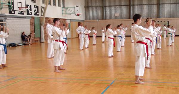 Am Samstag und Sonntag wurde interdisziplinär geübt. Die Kämpfer übten sich in vielen Formen des SHITO-RYU und SHOTOKAN u. a. der Kata "UNSU" mit den KVSA-Cracks unter Leitung von Diplomtrainer & Landestrainer Kata Marcus Gutzmer im "privaten" Einzel-, wie im Gruppentraining. Die Kata-Athleten hingegen verbesserten ihre Kumite-Kenntnisse mit Schülertrainer Jörg König und LT Kumite JUG/JUN/SEN Jürgen Mayer. Am Sonntag wurden die Trainingsinhalte des Samstags nochmal "nachgearbeitet" und vertieft. Die Bedingungen (Dojo, Halle, Laufbahn, Spielwiese & Geräte) und das Rahmenprogramm (Grillfest, Fussball-WM, Disco, Eismann & Catering) in der Hansestadt, organisiert von Familie Bause, waren erste Sahne - wirklich gelungen!