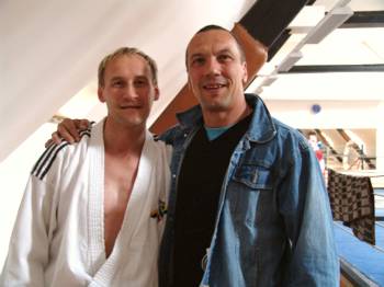 Der Landestrainer des KVSA Kumitekaders Jürgen Mayer, war insgesamt sehr begeistert von der Motivation und Leistungsbereitschaft seiner Schützlinge aus Halle, Wittenberg, Bernburg, Magdeburg, Quedlinburg, Wernigerode, Salzwedel, Ballenstedt, Tangermünde, Tangerhütte, u.a. Vereinen. Im Boxraum wurde die korrekte Schlag -und Tritthaltung geschult, die Schlagfrequenz und -härte gefördert, sowie Wille und Durchhaltevermögen im hochintensiven, hochlaktaziden Kurzzeitausdauerbereich gefordert!!! Es wurden im Rahmen der Kaderorganisation auch die Athletenerfassungsbögen "upgedatet", die DM (Unterkunft, Anreise, etc) und eine Terminabsprache 2006 (Teilnahme in , nächstes Kader in Salzwedel) mit den Athleten und Verantwortlichen durchgeführt. Es war auch unser Verbands-Präsident (Bernburg) angereist. Ein dickes Lob an ihn! Siehe auch das Foto links: im Gespräch mit Athleten in den heiligen Hallen des Landesleisungszentrums für Boxen des SC Chemie Halle |