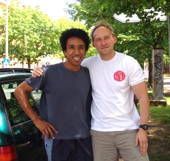 Der Assistenztrainer von HARUTOSHI HIROTA Wadokai Karate- und Iaido-Meister aus SHIZUOKA (Tokai-University - nahe dem Fujiyama gelegen/ siehe Foto unten im Kreise seiner Schüler in Japan), Dritter der Alljapanischen Meisterschaften, weilte für vier Tage als Gast des KVSA in Halle. Neben dem Training zusammen mit Jürgen Mayer zu leiten, standen Sightseeing -und Shoppingtouren nach Halle auf dem Programm. Ausgiebig wurde die DEUTSCH-JAPANISCHE Freundschaft gepflegt. So mußte er für viele Fotos, siehe unten, posieren ... ;-)