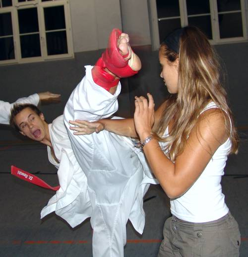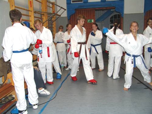 Halle 15.09.2006/ Halle war wieder einmal Gastgeber für die besten Kämpfer aus Sachsen-Anhalt. Zusammen wurde am Freitagabend die letzte Vorbereitung zur 4.Radefeld-Open in Delitzsch (Sachsen) abgewickelt. Das kleine, aber feine Karateturnier für alle Altersklassen (Kinder, Schüler, Jugend, Junioren und Senioren) wird vom KI Halle organisiert. Die Kämpfer des Landeskaders Sachsen-Anhalt absolvierten eine Trainingseinheit unter Leitung von Landestrainer J. Mayer, 4.Dan. Die Inhalte und Belastungsnormative (unmittelbare Wettkampfvorbereitung) wurden im Hinblick auf den Wettkampf am darauffolgenden Tag ausgewählt. Die Einheiten waren wettkampfspezifisch ausgerichtet: kurze Belastungszeiten entsprechend dem WKF-Regelwerk und lange Erholungspausen. Die wichtigsten Techniken und Taktiken nochmal in den "Kurzzeit-Speicher" geholt. Oberstes Gebot war verletzungsfrei zu trainieren. Leider fehlten viele entschuldigte Leistungsträger die krank oder verhindert waren. Die anwesenden Kämpfer waren motiviert und hatten hinterher Spaß und eine gute Stimmung (siehe Fotos unten). Viele Jugendliche übernachteten in der Trainingshalle. Am nächsten Morgen sorgte die Familie Rewohl und Landestrainer Jürgen Mayer für den Transfer nach Delitzsch. |