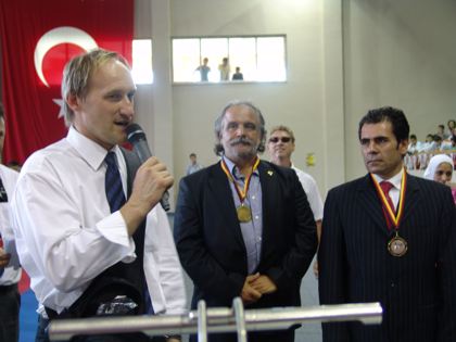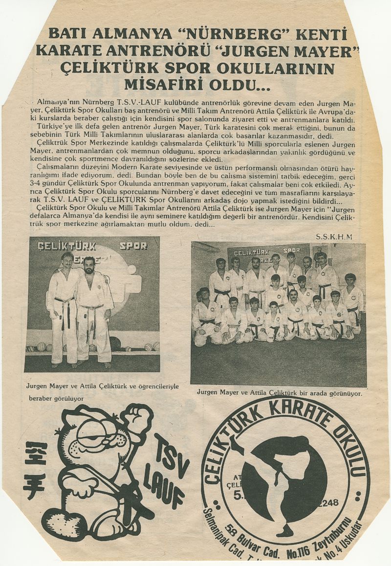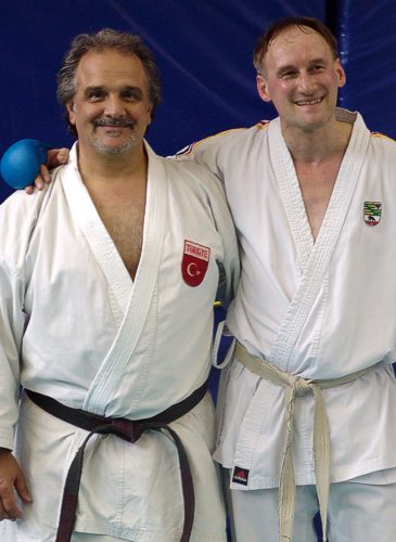 Freund von Jürgen Mayer und Gasttrainer bei ihm seit über 28 Jahren! ... Geboren im März 1955. Hat bereits im Grundschulalter mit Boxen angefangen und hier Turniere bestritten. Danach wechselte er zum Judo und begleitendem Bodybuilding. Mit Karate hat er 1971 angefangen und nahm bereits 1975 an seiner ersten Europameisterschaft und an der Balkanmeisterschaft teil. Es folgte die 2jährige Militärzeit. 1975 erreichte er den Schwarzgurt der TKF (Türkischen Karate Federation), 1977 den der JKA (Japan Karate Association). In der Zeit von 1977 bis 1984 hat er an allen Europa- und Weltmeisterschaften im Karate teilgenommen! Er wurde Dritter bei den Europameisterschaften. Mit 38 Jahren wurde er noch Zweiter der Schweizer Karate Trophy. 1984 hat er das Amt des Türkischen Karate-Nationaltrainers bekommen. Bereits 1985 war sein neu aufgebautes Team Europameister! 1989 erstmals 1x Gold und 1x Bronze bei der Weltmeisterschaft für die Türkei errungen. In den folgenden Jahren ein stetiger Anstieg der türkischen Karatespitzensportler im Weltkarate. Es häufte sich die Medaillenflut bei Welt-, Europa-, Balkan-, Mediterran-Meisterschaften. Insgesamt war er 12 Jahre lang türkischer Nationaltrainer. Es folgten Angebote aus Saudi-Arabien und Jordanien. Er führte diese Nationen zum Anschluß an die Weltspitze und sorgte dafür, dass auch hier modernes, sportwissenschaftlich richtiges, Karate unter seiner Anleitung geübt wurde. Individuell ging er auf seine Kaderathleten ein und forderte und förderte vor allem die Schnell -und Startkraftfähigkeiten seiner Kämpfer durch spezielle Aufbauprogramme. Seit 2004 hat er sein eigenes Sport-Centrum im reichen Viertel Besiktas in Istanbul. Es gibt hier Body-Fitness, Steb-Aerobic, Tanz, Karate und Kickboxen. In der Türkei gibt es fünf verschiedene staatliche Trainerlizenzen. Er hat die Höchste inne. Seit dem Jahr 2013 ist er Träger des 8.DAN im Karate.