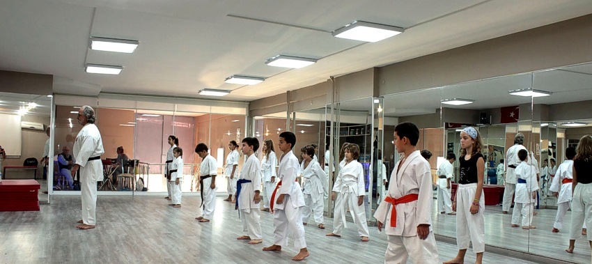 Foto oben: Atilla Celiktürk, 7.DAN im Jahr 2014 als Trainer seiner Karatekinder in seinem Dojo in Istanbul