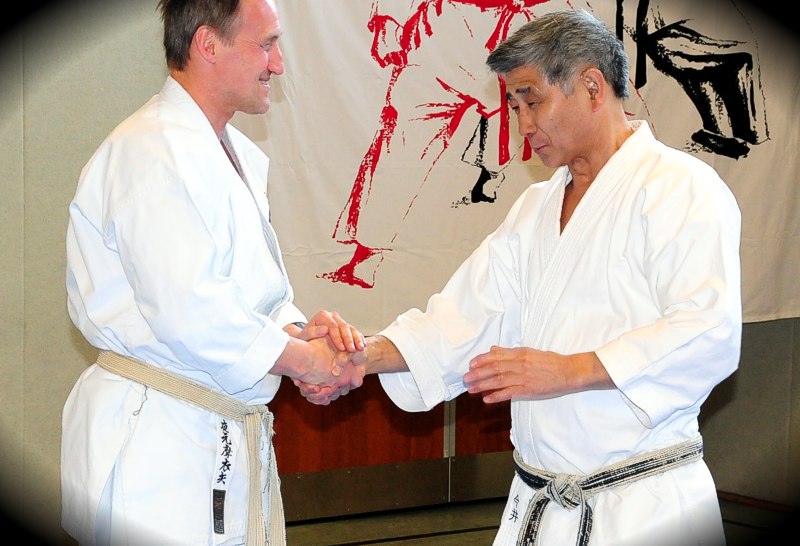 lehrt und prüft daher selbst Kata und Ideen des Shotokan, Shito-Ryu,