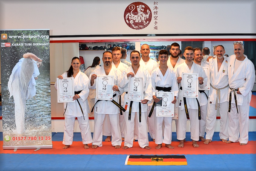 Wadokai, Kyokushinkai und Kobudo. Sportorganisation In der Sportorganisation ist er seit 1983! leitend tätig. Seine ganze Schaffenskraft gilt dem Aufbau, der Organisation und Weiterentwicklung der Kampfkunst. Seit fast drei Jahrzehnten ist er auch Organisator von Meisterschaften (u.a. DM KOBUDO 2002 und BM 2003) und vielen Lehrgängen. Er ist dafür verantwortlich das die Region Nbg. Land zu einer bayerischen Karatehochburg wurde. DangradeDer leidenschaftliche Kampfsporttrainer bestand bereits 1986 den 1.Dan im Karate bei JKA-Instructor Hideo Ochi, 8.Dan. Sein aktueller Meistergrad ist der 7.DAN (verleihung durch den Präsidenten der WSKU in Pristina, Kosovo 2014), den 6.Dan (im Deutschen Karate Verband bestanden), bereits 2007 hatte er den 5.Dan inne, den er bei dem ranghöchsten und einzigen 9.Dan Deutschlands Fritz Nöpel bestand. Im Taekwon-Do der DTU und im Hanbo-Jitsu (Stockselbstverteidigung)ist er ebenfalls Schwarzgurt. Im Goshin-Jitsu (Selbstverteidigungs- schule des Kodokan-Judo) ist er 1.Kyu (Dananwärter). Er ist ebenfalls 3.Dan im Waffensystem Tonfa. Im Rahmen der