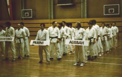 1985, Vergleichskampf Internationale Studentenmeisterschaft in Belgrad (Yugoslawien) mit der "Uni Ansbach" (einer Bayernauswahl). Ich startete in Kata & Kumite. 4ter. von hinten |