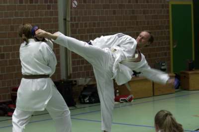 Dez 1983 Violettgurt 5.Kyu mit der Technik MAE-GERI in Lauf |